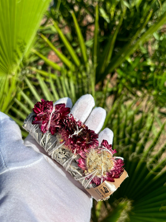 White Sage 4" Smudge Stick W/ Flowers
