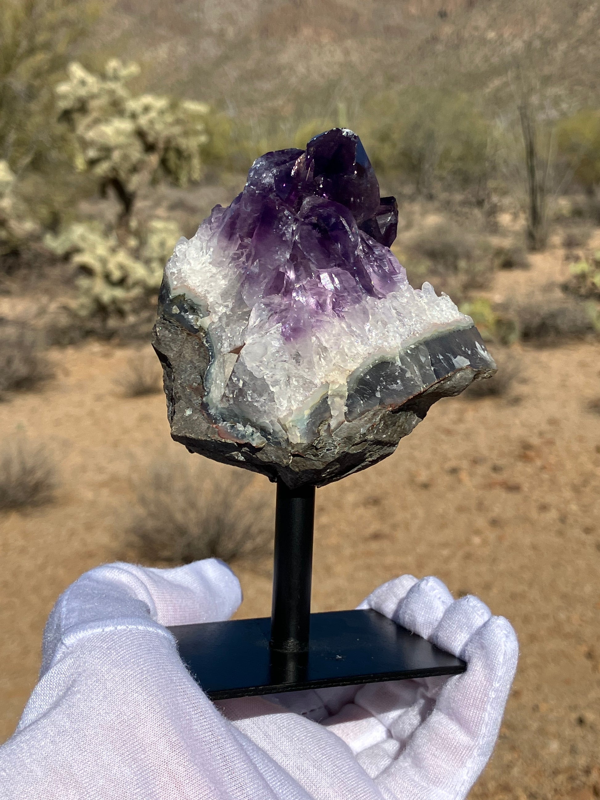 A top choice for Reiki healers, yogis, and crystal healing enthusiasts. This amethyst cluster makes a meaningful gift and a beautiful spiritual accent in any home. Place it on your desk, bookshelf, or anywhere you want to cultivate tranquility. Let its harmonizing energy infuse your space with light.