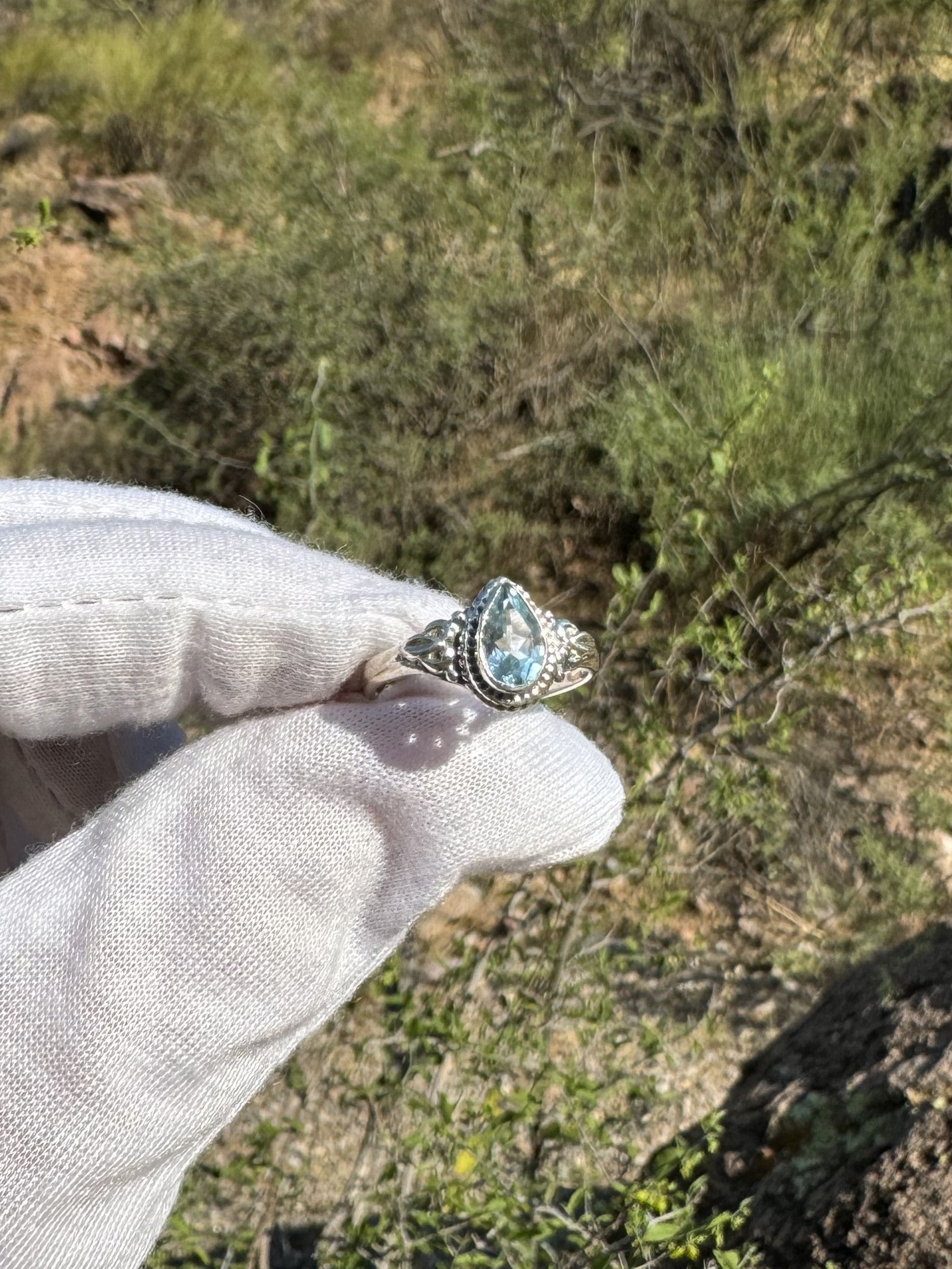 This beautiful Aquamarine Sterling Silver Ring is the perfect addition to any jewelry collection. This exquisite piece features a dazzling aquamarine stone set in a sleek and elegant sterling silver band, perfect for adding a touch of sophistication to any outfit. Gift yourself or a loved one with this timeless treasure.