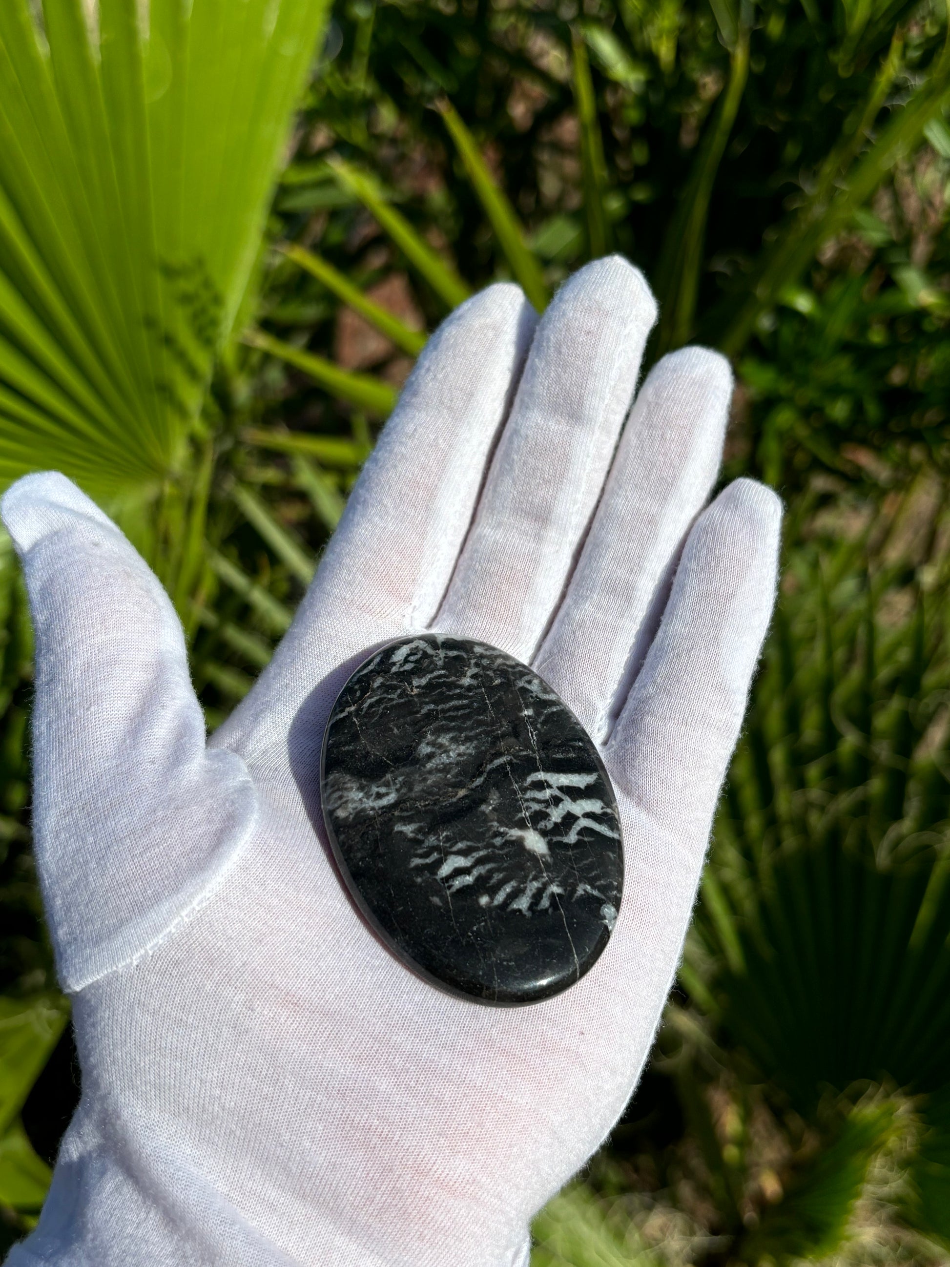 Together, these two crystals create a synergistic effect that elevates your energy and helps you achieve a higher level of alignment. This exquisite palm stone is carefully crafted to provide you with the perfect combination of protection and harmony.