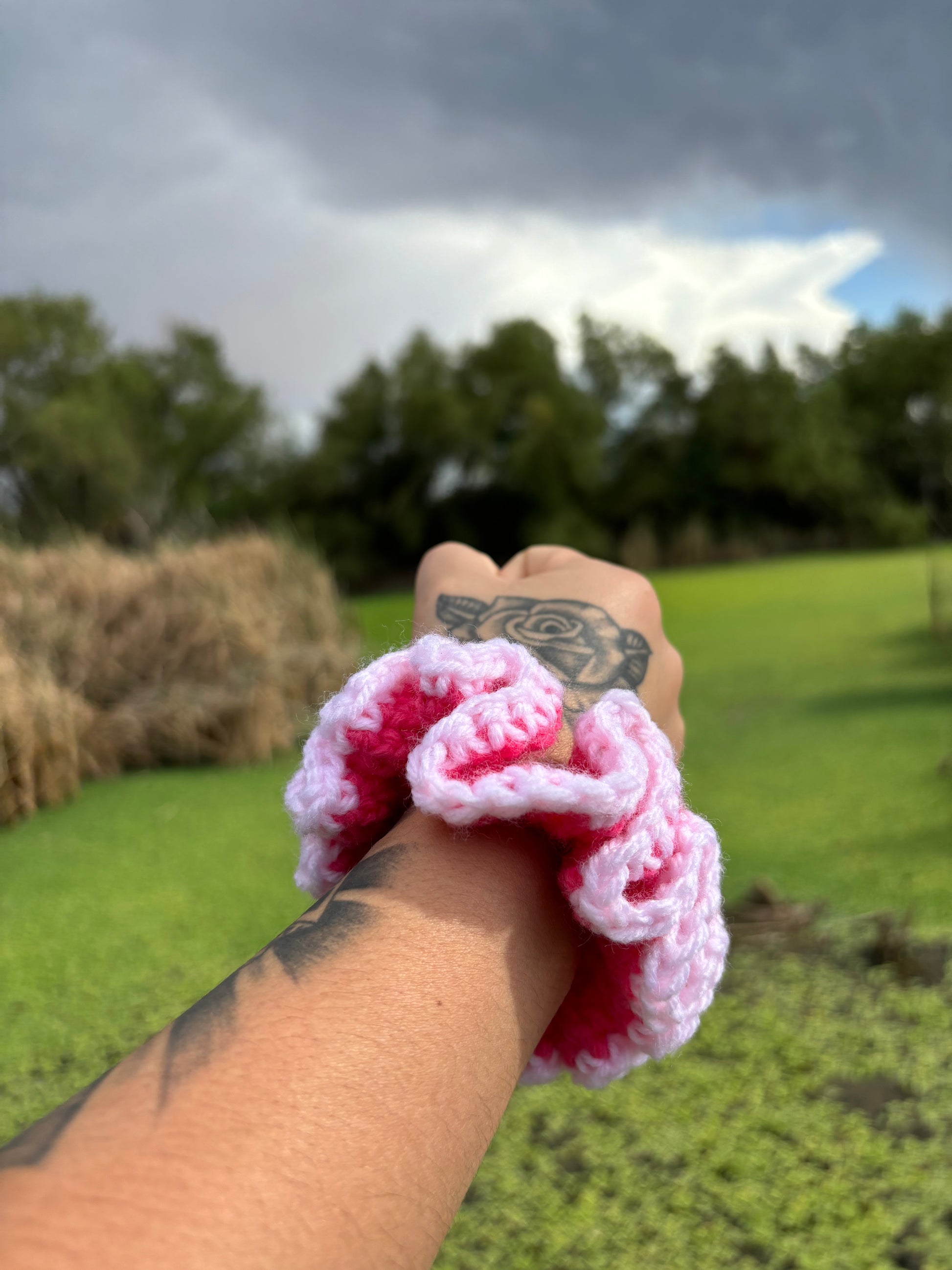 Fully handmade crochet hair accessory. Features an elastic hair tie in the middle. You can find an assortment of colors in our shop or email us for custom colors and measurements.