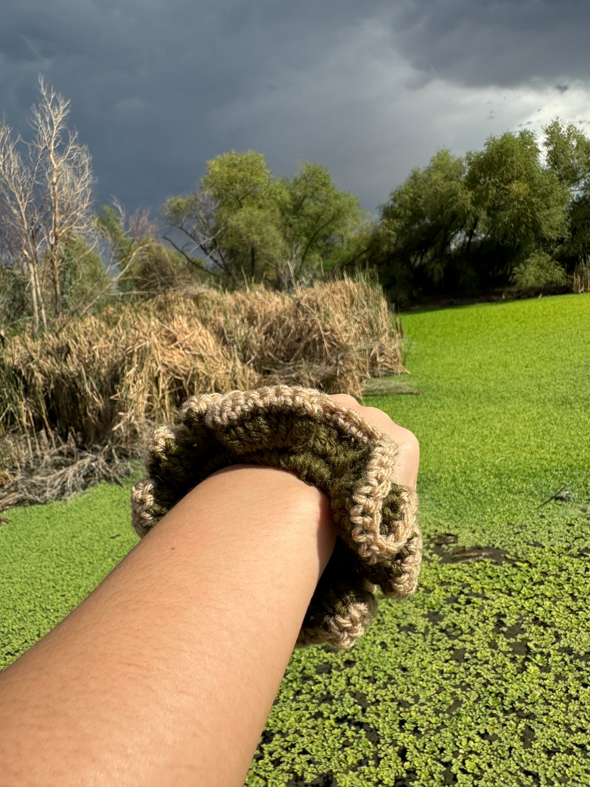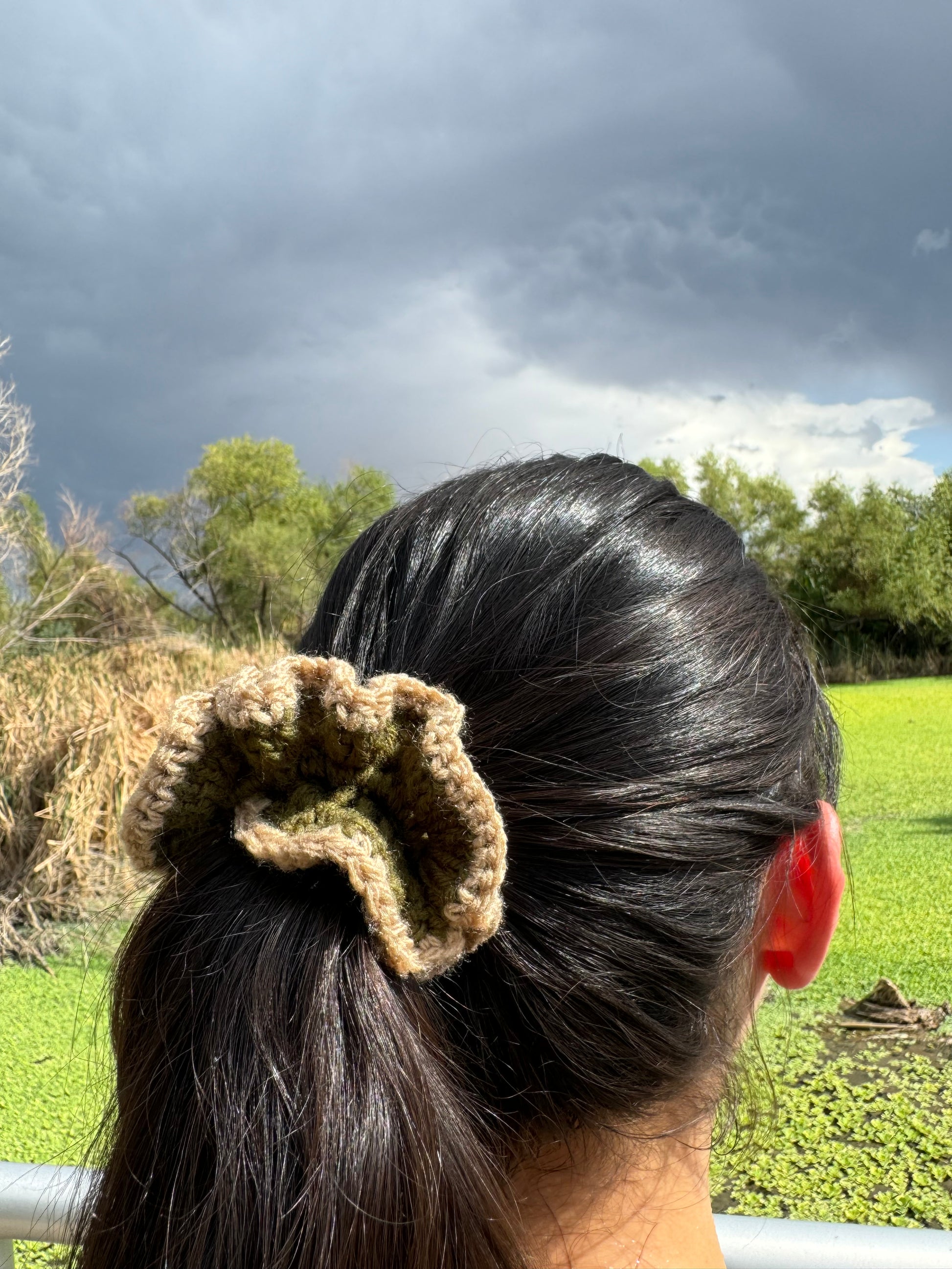 Fully handmade crochet hair accessory. Features an elastic hair tie in the middle. You can find an assortment of colors in our shop or email us for custom colors and measurements.