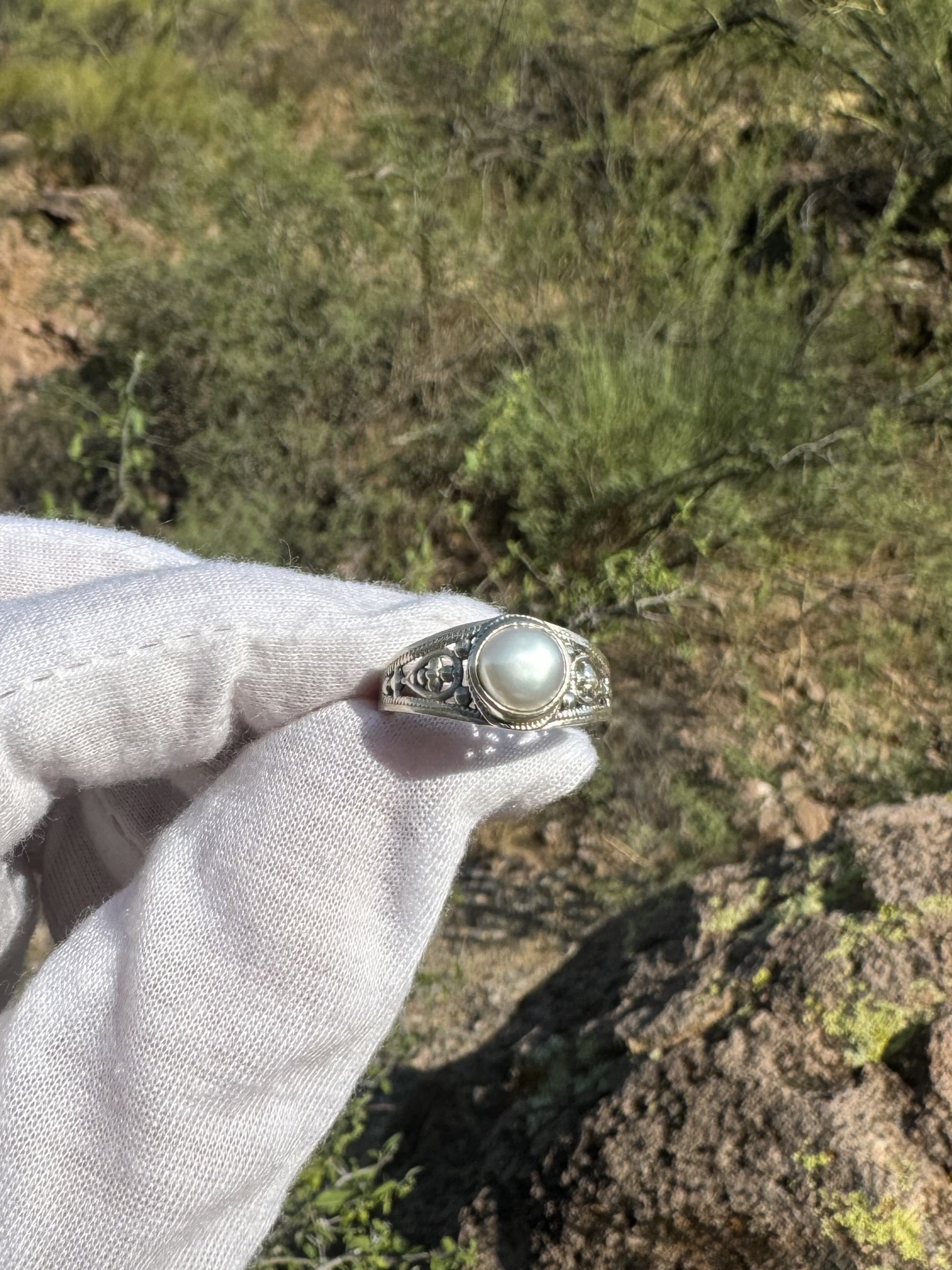 Faux Pearl Sterling Silver Ring ~ Size 7