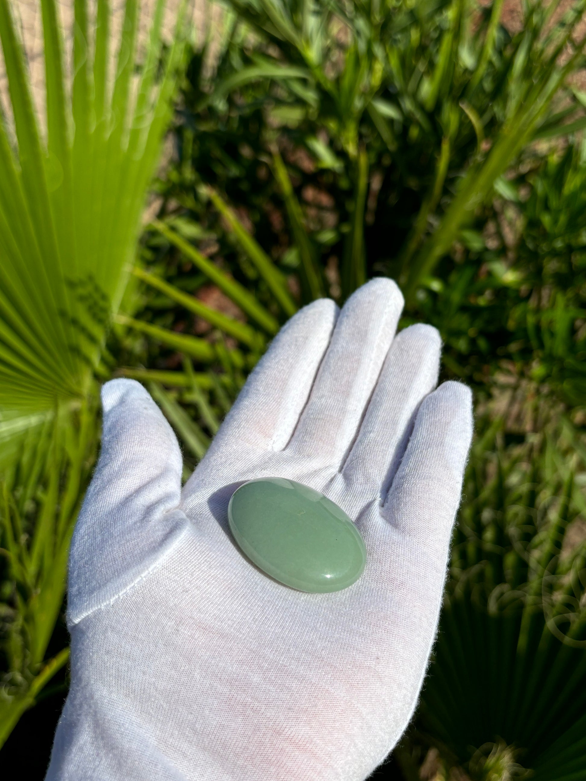 Incorporating the Green Aventurine Palm Stone into your self-care routine can help you cultivate a deeper connection with yourself and the world around you. Green aventurine's gentle and nurturing energy is said to open the heart chakra, fostering compassion, empathy, and forgiveness. In addition to its prosperity and emotional healing properties, green aventurine enhances one's sense of optimism, self-confidence, and motivation.