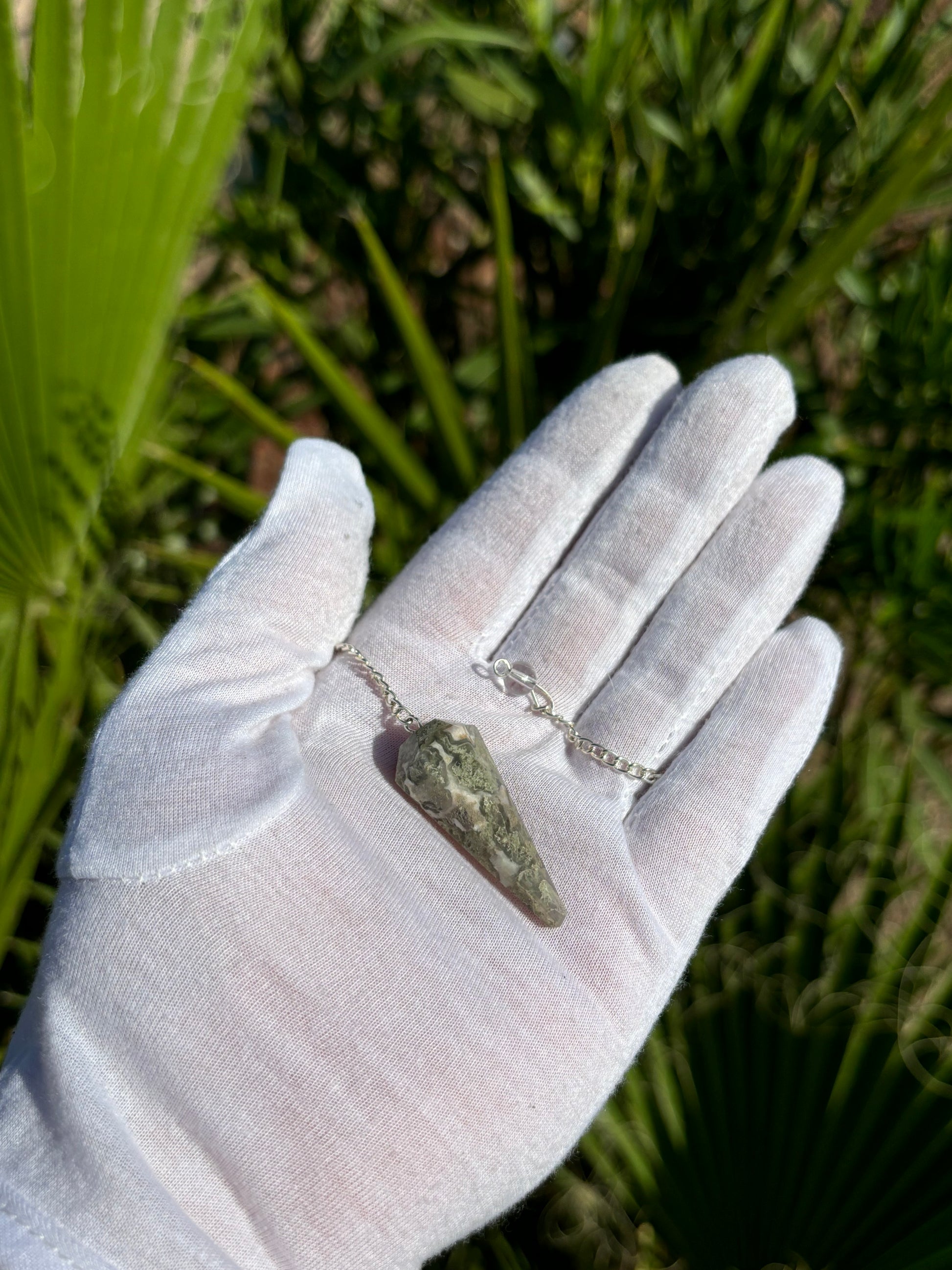 The Moss Agate Pendulum is carefully crafted to ensure both beauty and functionality. The smooth and polished surface of the pendulum allows for easy movement and accurate readings during divination sessions. Whether you are a seasoned practitioner or just starting out on your spiritual journey, this pendulum is a versatile tool that can help you gain insights, clarity, and guidance in various aspects of your life.