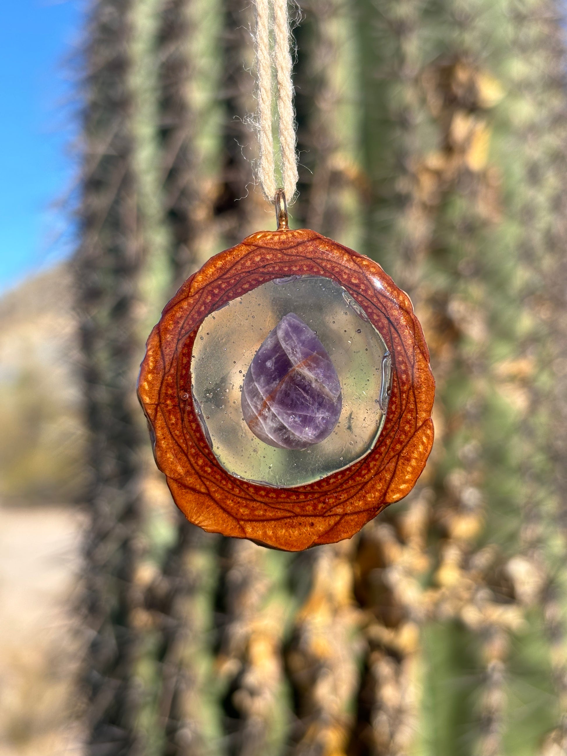 Our handmade pinecone pendant's are a true work of art, beautifully encased in crystal-clear resin that showcases the intricate details of the natural pinecone. Each pendant is unique, some featuring a beautiful crystal paired with a mesmerizing inlay design while others focus on the intricate design of the pinecone itself. The combination of the earthy pinecone and the shimmering resin creates a striking contrast that is sure to catch the eye. Whether you're dressing up for a special occasion or adding a unique touch to your everyday outfit, this pendant is the perfect accessory to express your individuality.