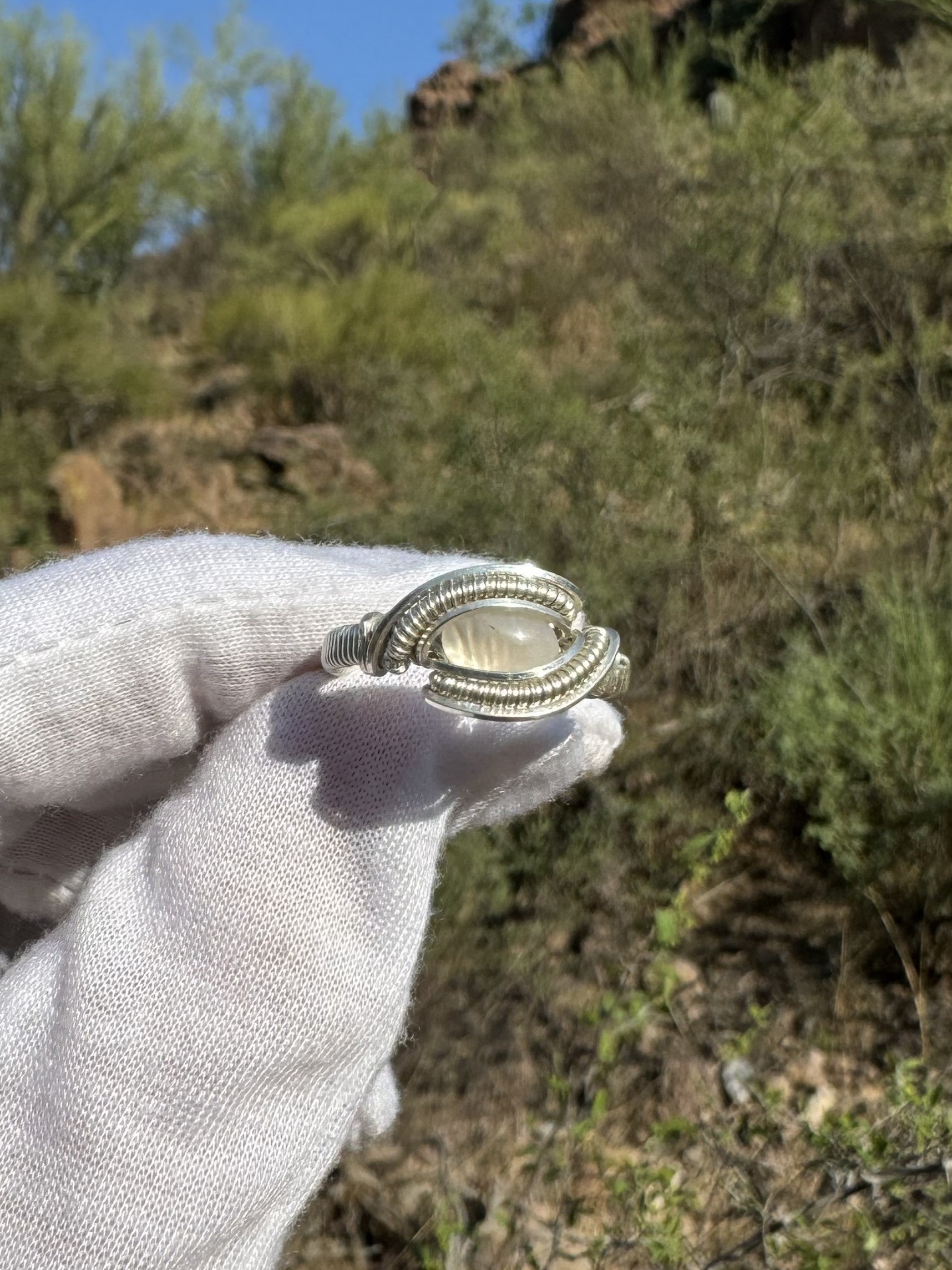 Rose Quartz Sterling Silver Wire Wrapped Ring ~ Size 8