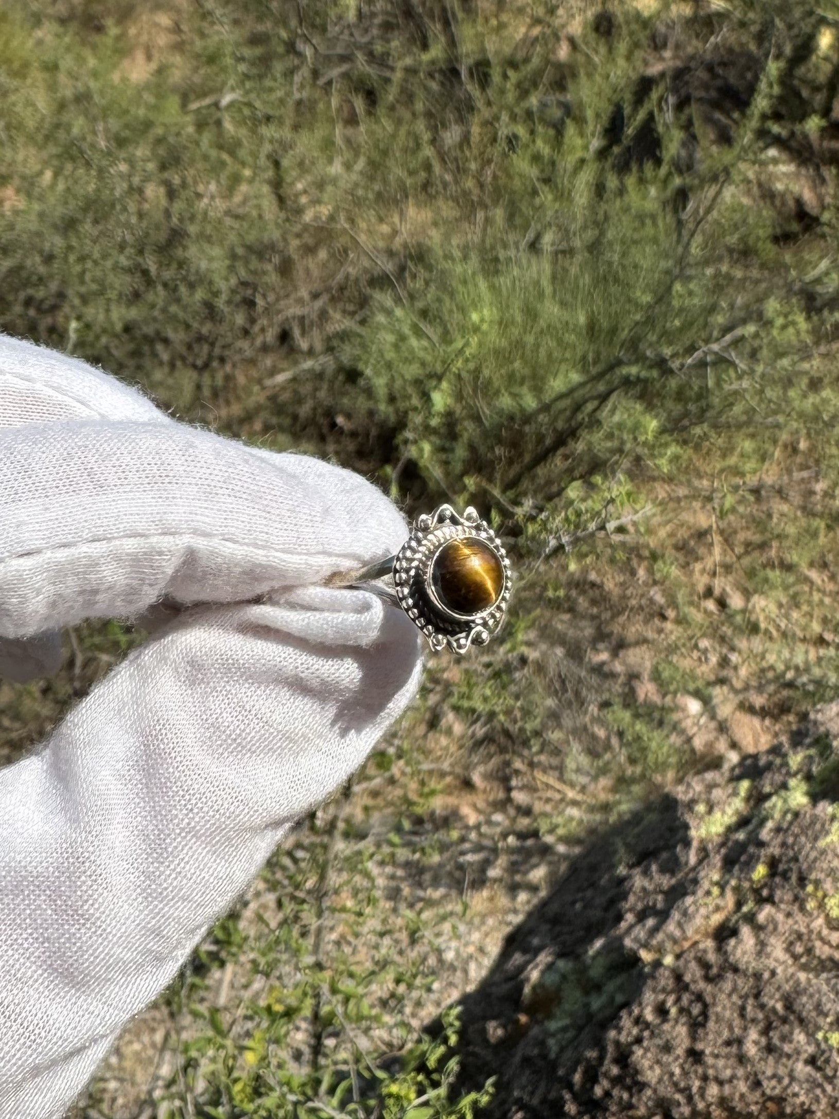 Add a touch of elegance and sophistication to your outfit with this a beautiful and versatile piece of jewelry that is sure to add a touch of elegance to any outfit. Made with high-quality materials, this ring brings a unique and timeless look to your collection. Let the mesmerizing and protective properties of tigers eye stone enhance your style and energy.
