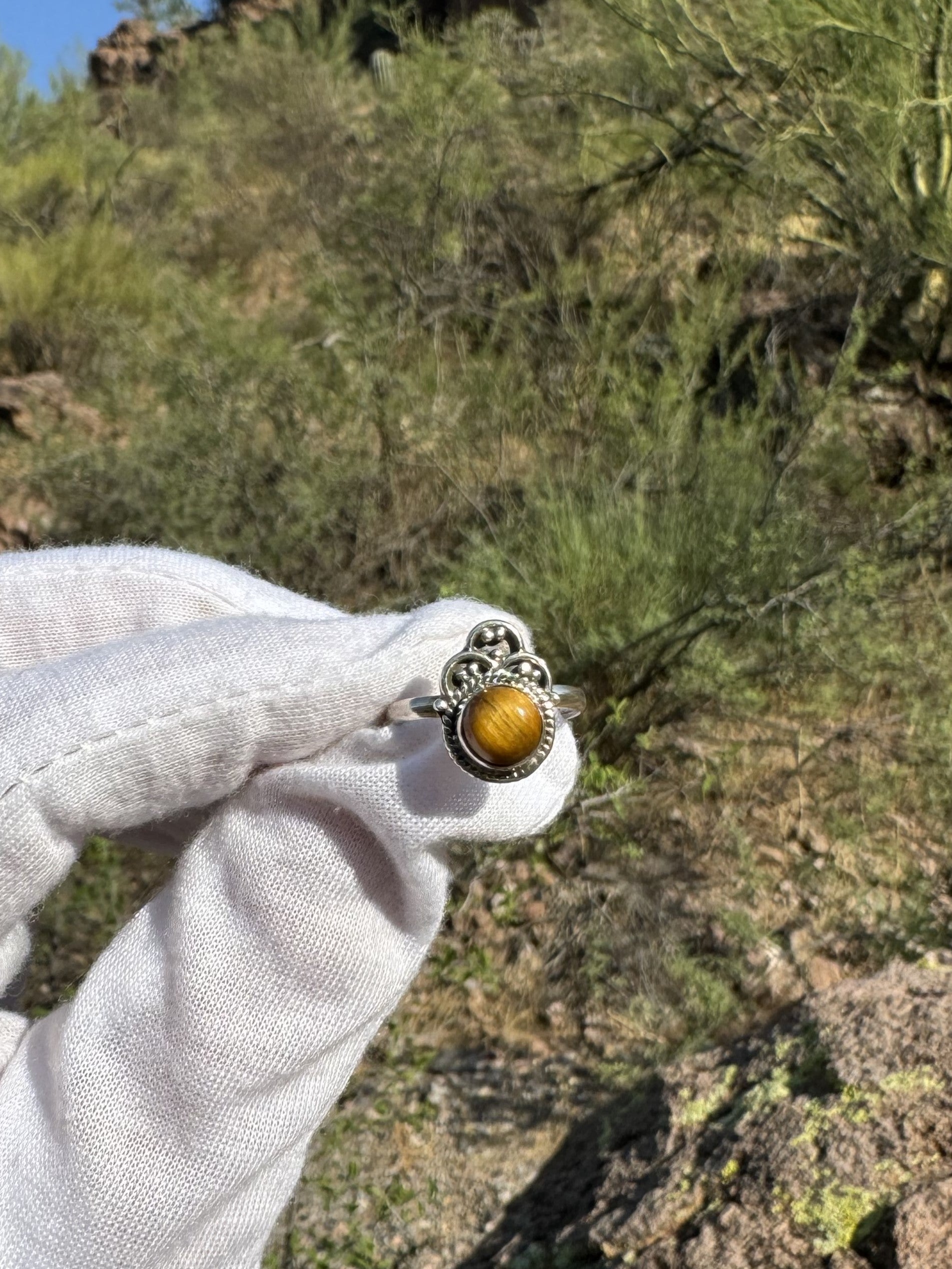 Add a touch of elegance and sophistication to your outfit with this a beautiful and versatile piece of jewelry that is sure to add a touch of elegance to any outfit. Made with high-quality materials, this ring brings a unique and timeless look to your collection. Let the mesmerizing and protective properties of tigers eye stone enhance your style and energy.