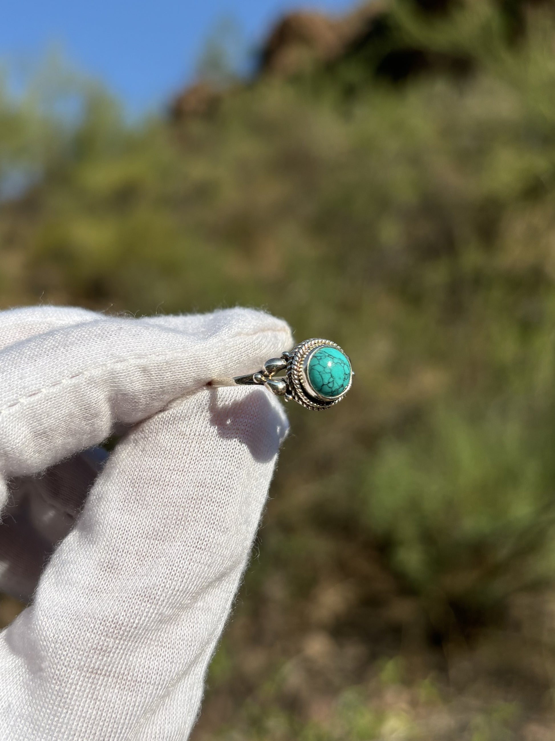 This stunning Turquoise Sterling Silver Ring is a beautiful piece of jewelry that will surely make a statement. The vibrant turquoise stone is set in a high-quality sterling silver band, creating a striking contrast that is both elegant and eye-catching. Elevate your style with this exquisite Turquoise Sterling Silver Ring and enjoy the beauty and positive energy it brings to your life.
