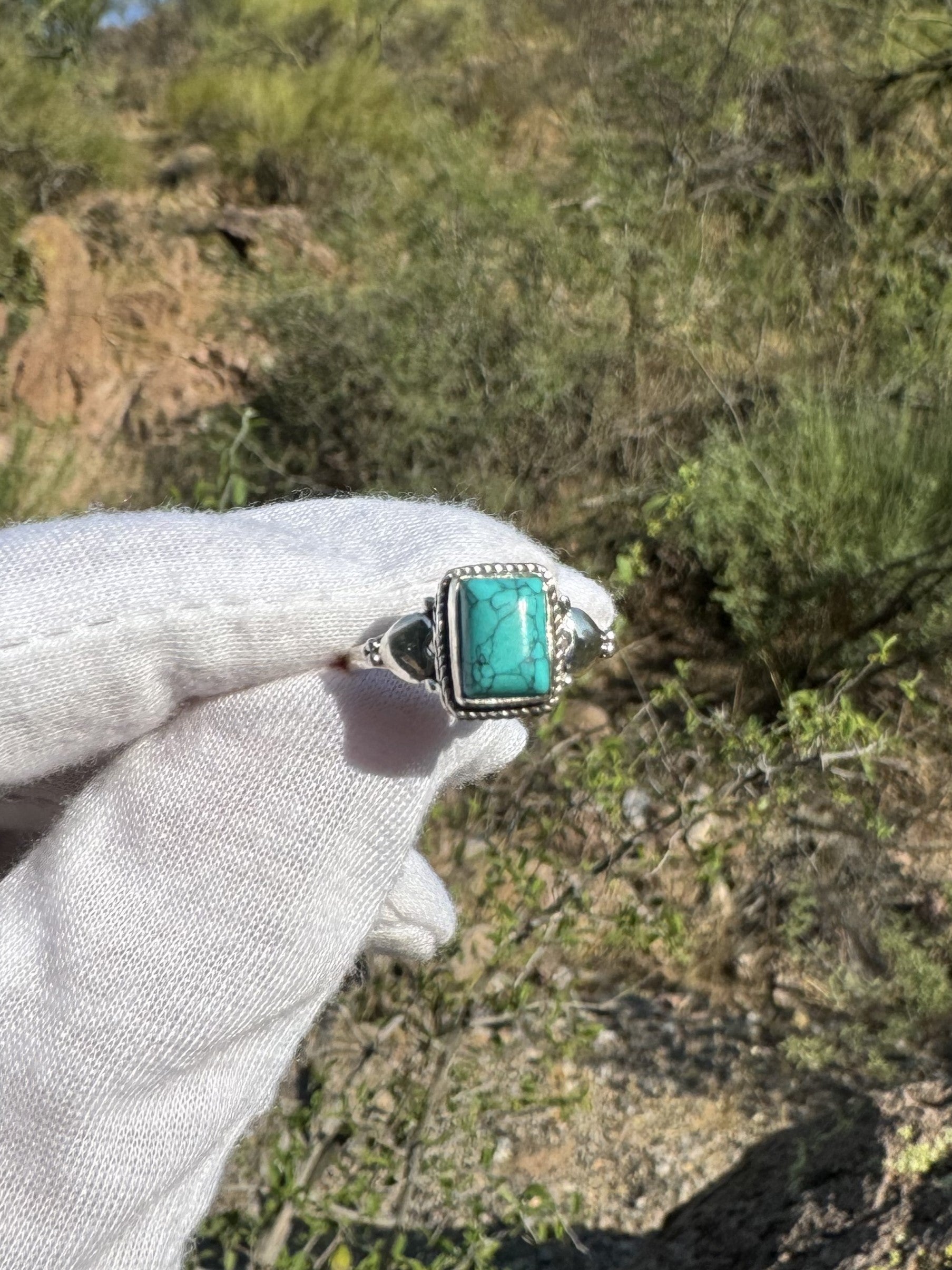 This stunning Turquoise Sterling Silver Ring is a beautiful piece of jewelry that will surely make a statement. The vibrant turquoise stone is set in a high-quality sterling silver band, creating a striking contrast that is both elegant and eye-catching. Elevate your style with this exquisite Turquoise Sterling Silver Ring and enjoy the beauty and positive energy it brings to your life.